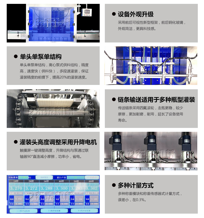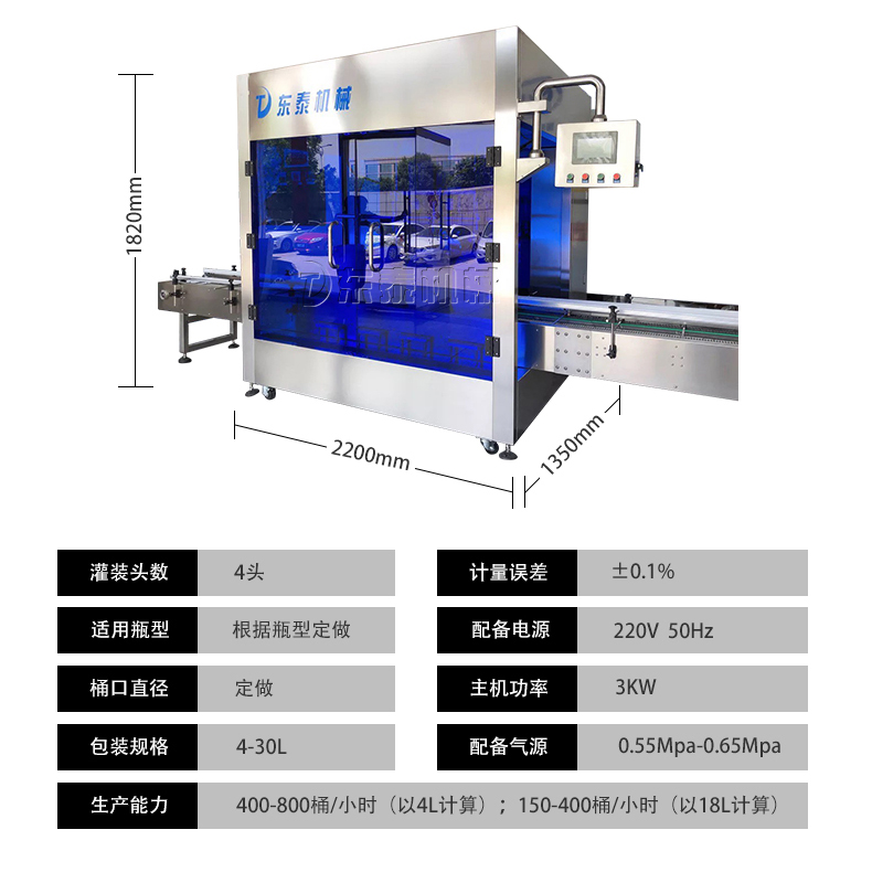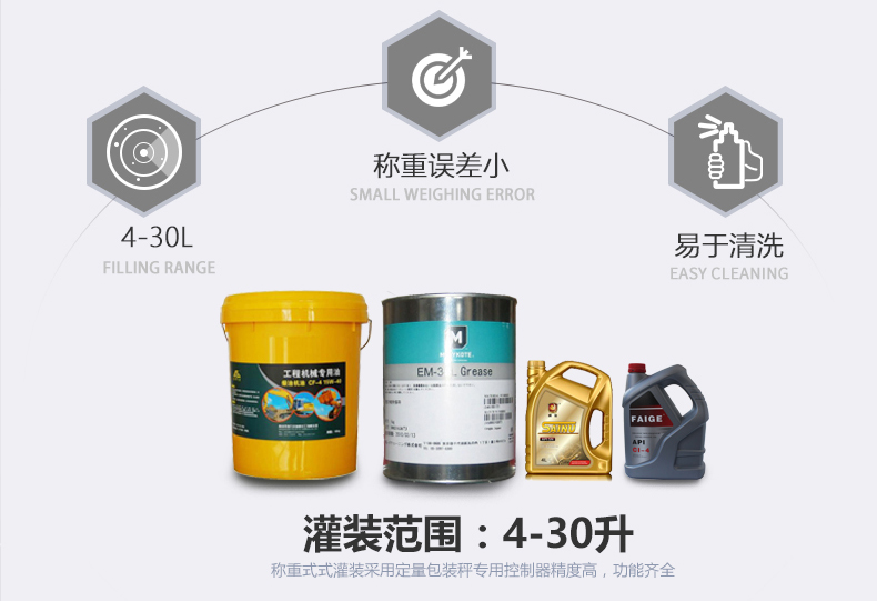 機(jī)油灌裝機(jī)適用于對(duì)4kg-25kg汽車用品類產(chǎn)品:潤滑油、防凍液、車用尿素等液體灌裝。自動(dòng)完成計(jì)數(shù)進(jìn)瓶、計(jì)重量灌裝、輸送出瓶等一系列操作。 特別適用于潤滑油、水劑、食用油的定量灌裝,是食品,醫(yī)藥,化妝品以及精細(xì)化工等行業(yè)的理想灌裝機(jī)。本機(jī)采用可編程控制器(PLC)、高速工控組態(tài)軟件進(jìn)行實(shí)時(shí)監(jiān)控的控制,使用調(diào)節(jié)方便。整機(jī)按GMP標(biāo)準(zhǔn)要求制作,各管路連接采用快裝方式,拆卸清洗方便,與物料接觸部位及外露部位均采用不銹鋼制造。整機(jī)安全、環(huán)保、安全、美觀、能適應(yīng)各種不同環(huán)境工作。