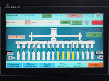 2.灌裝采用電機升降結構,不同規(guī)格灌裝時直接在觸摸屏上調(diào)整灌裝頭高度,一鍵完成,無