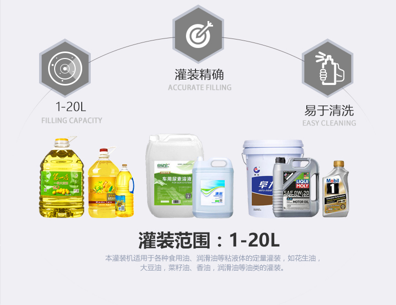 食用油幾乎是每家的必須品,我們平時做菜都離不開食用油,比如我們?nèi)粘J秤玫挠陀姓{(diào)和油、花生油、大豆油、橄欖油等等... 這時候一款合適的食用油灌裝機(jī)對食用油制造廠家就變得極為重要,這系列的灌裝機(jī)都應(yīng)用了流量計式計量的灌裝原理,榮獲了多項認(rèn)證,能過適用于多種規(guī)格(1-5升)的南瓜籽油、榛子油、牡丹籽油、芝麻油、各種的食用油的灌裝作業(yè)。